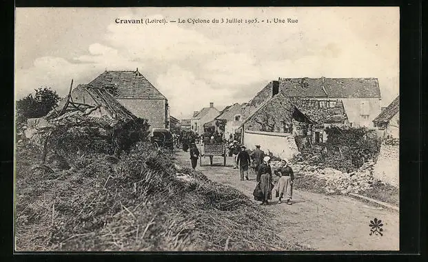 AK Cravant, Le Cyclone 1905, Une Rue, Strassenpartie, Unwetter