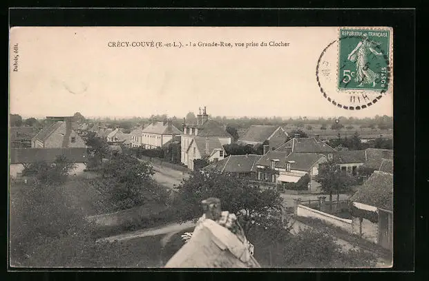 AK Crécy-Couvé, La Grande-Rue, vue prise du Clocher