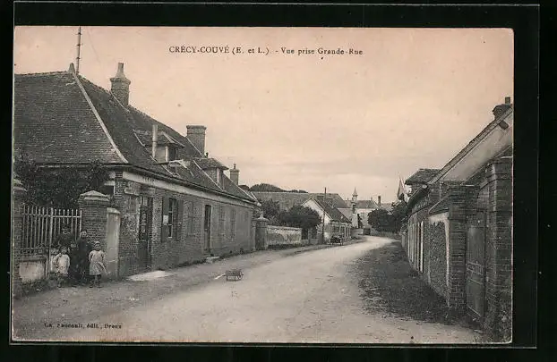 AK Crécy-Couvé, Vue prise Grande-Rue