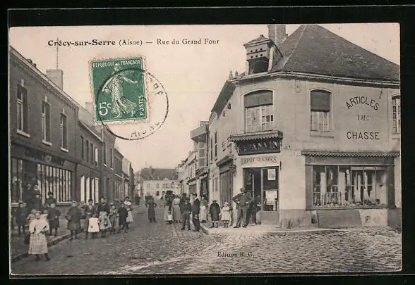 AK Crécy-sur-Serre, Rue du Grand Four, Articles de Chasse