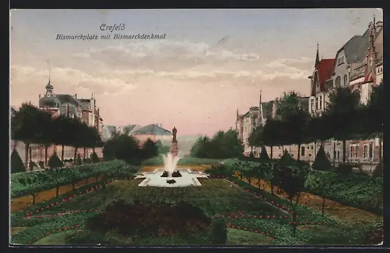 AK Crefeld, Bismarckplatz mit Bismarckdenkmal