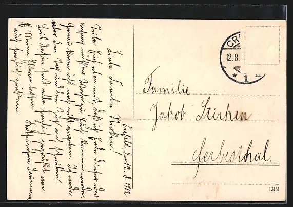 gelaufen 1912, Briefmarke entfernt, guter Zustand