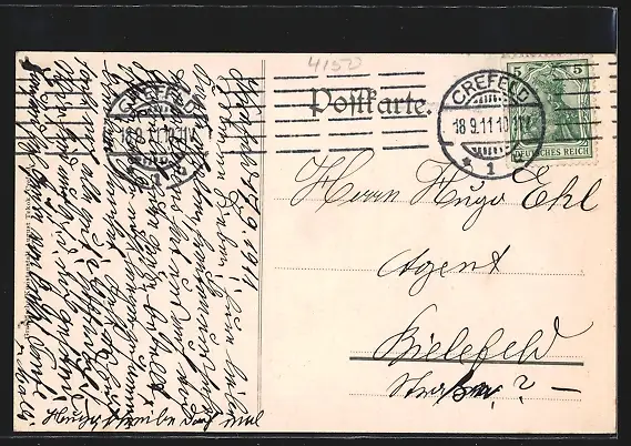 alte Ansichtskarte, gelaufen 1911, Stempelspur, guter Zustand