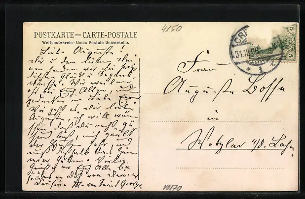 alte Ansichtskarte, gelaufen, Briefmarke entfernt, Eckknick oben re., guter Zustand