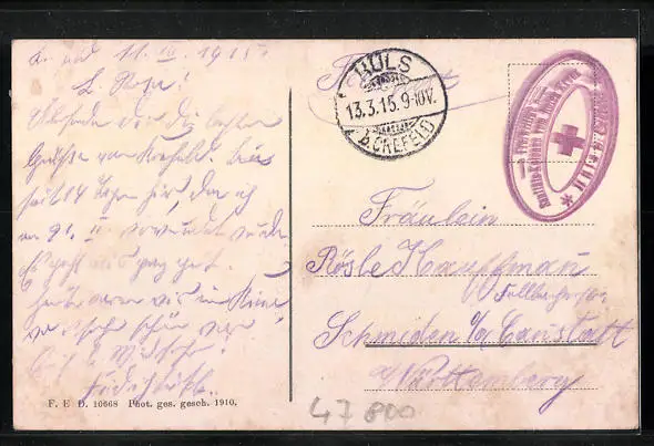 gelaufen 1915 als Feldpost, guter Zustand