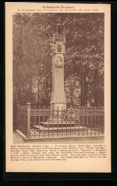 AK Crefeld, Denkmal der Schlacht bei Crefeld
