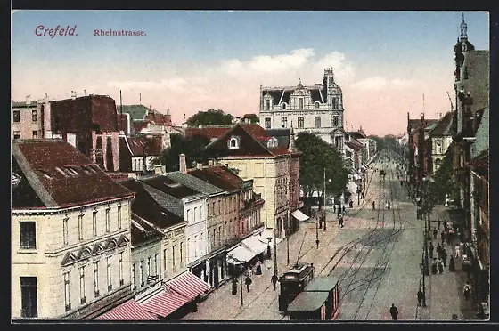 AK Crefeld, Die Rheinstrasse aus der Vogelschau