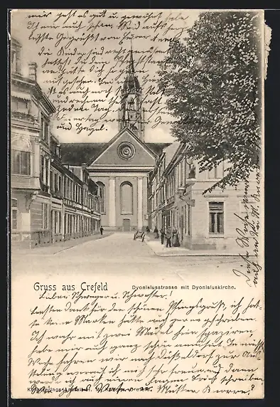 AK Crefeld, Dyonisiusstrasse mit Dyonisiuskirche
