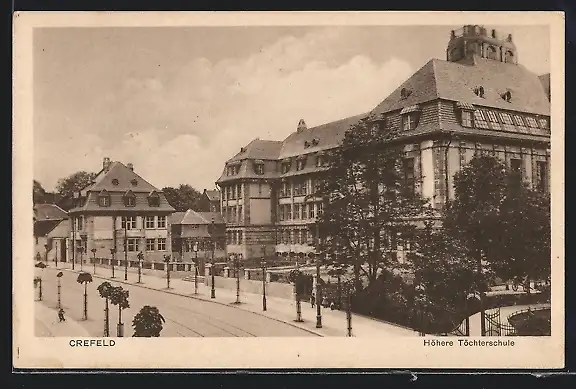 AK Crefeld, Höhere Töchterschule mit Strassenpartie