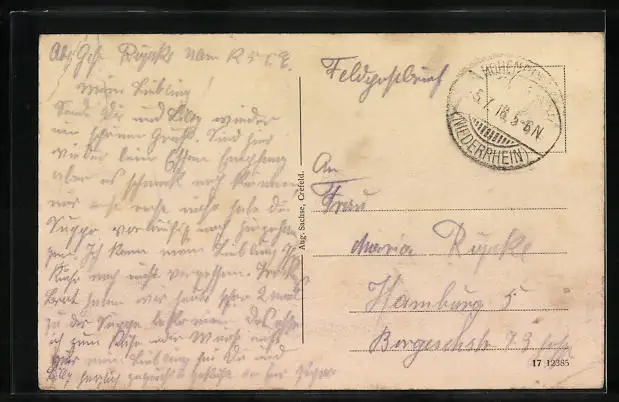 alte Ansichtskarte, gelaufen als Feldpost 1918, Eckknicke re. oben u. li. unten, guter Zustand
