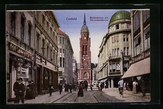 AK Crefeld, Rheinstrasse mit Dionysiuskirche