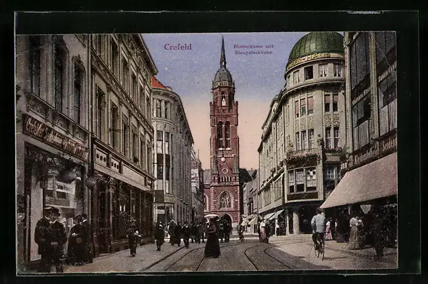 AK Crefeld, Rheinstrasse mit Dionysiuskirche