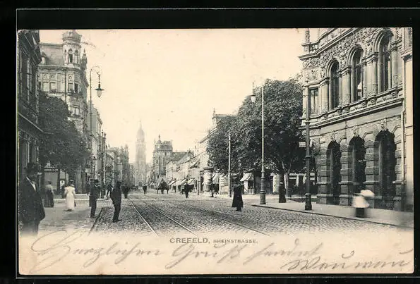 AK Crefeld, Rheinstrasse mit Passanten