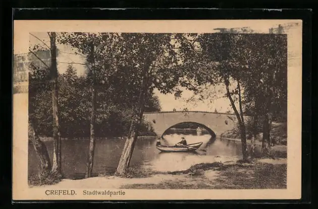 AK Crefeld, Stadtwaldpartie mit Brücke