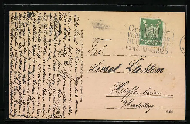 alte Ansichtskarte, gelaufen 1925, Eckknick unten re., Stempelspur, guter Zustand