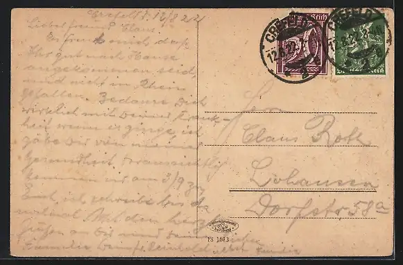 alte Ansichtskarte, gelaufen 1922, guter Zustand