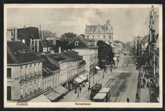 AK Crefeld, Strassenbahn in der Rheinstrasse