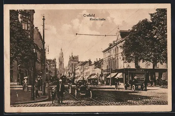 AK Crefeld, Strassenpartie in der Rheinstrasse