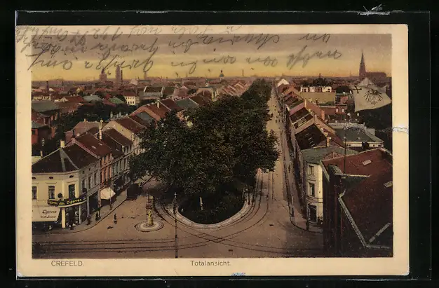 AK Crefeld, Totalansicht aus der Vogelschau