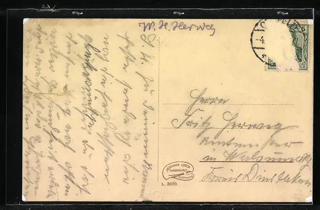 alte Ansichtskarte, gelaufen, Briefmarke entfernt, Einriss rechts, guter Zustand