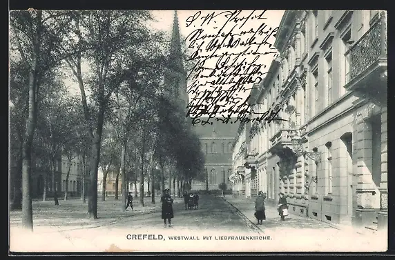 AK Crefeld, Westwall mit Liebfrauenkirche