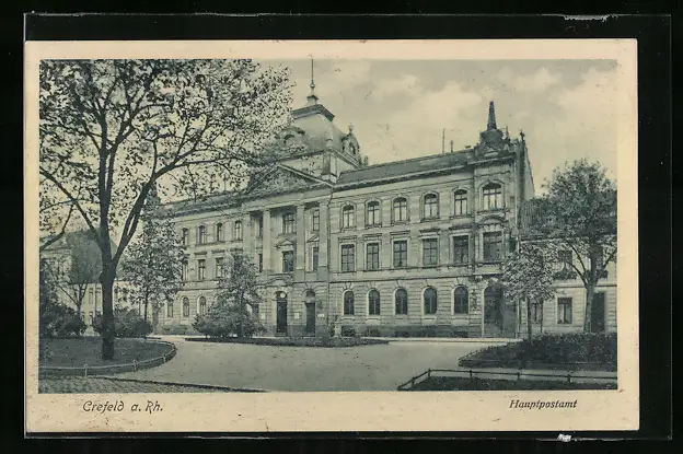 AK Crefeld a. Rh., Hauptpostamt mit Bäumen