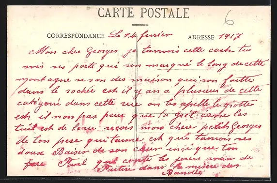 Personenbezogene Daten auf der Rückseite der Karte wurden durch blauen Textmarker unkenntlich gemacht. Die blauen Stellen sind auf die Vorderseite durchgeweicht und wirken sich negativ auf das Postkartenfoto aus
