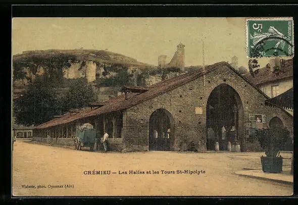 AK Crémieu, Les Halles et les Tours St-Hipolyte