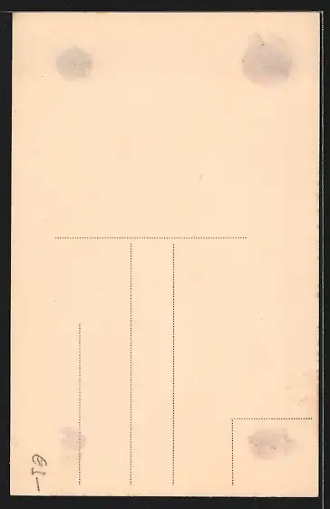Personenbezogene Daten auf der Rückseite der Karte wurden durch blauen Textmarker unkenntlich gemacht. Die blauen Stellen sind auf die Vorderseite durchgeweicht und wirken sich negativ auf das Postkartenfoto aus