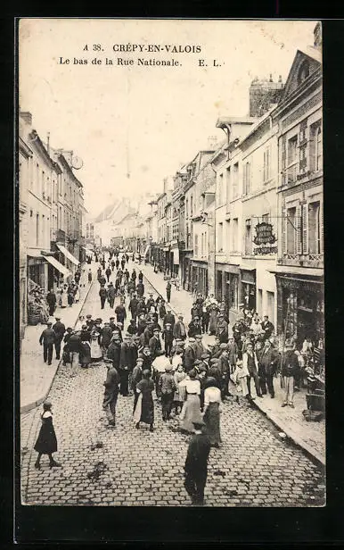 AK Crépy-en-Valois, Le bas de la Rue Nationale