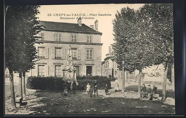 AK Crepy-en-Valois, Place Gambetta et Monument des Vétérans