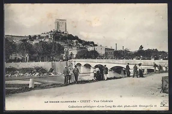 AK Crest, Vue générale du village avec pont et tour en arrière-plan
