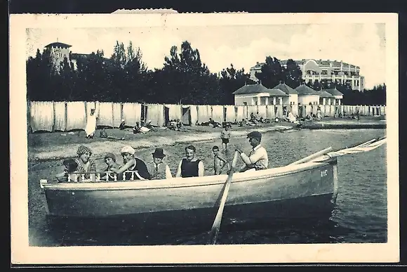 AK Crikvenica, Ausflügler im Ruderboot im Strandbad