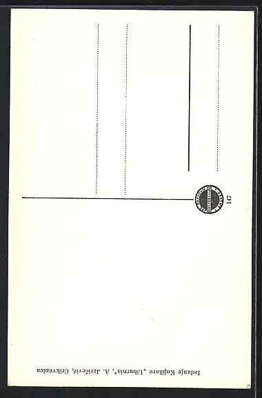 Personenbezogene Daten auf der Rückseite der Karte wurden durch blauen Textmarker unkenntlich gemacht. Die blauen Stellen sind auf die Vorderseite durchgeweicht und wirken sich negativ auf das Postkartenfoto aus