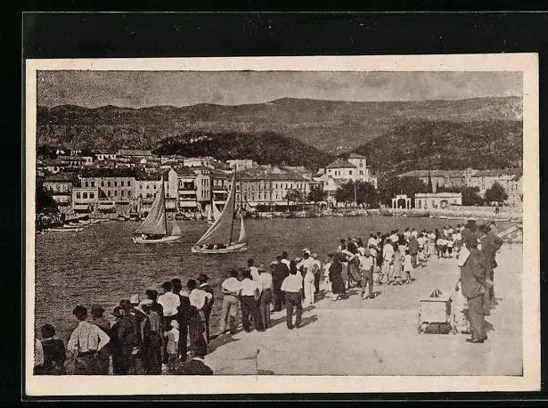 AK Crikvenica, Segelboote auf dem Wasser, Zuschauer an der Küste