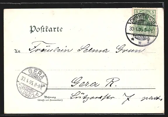 alte Ansichtskarte, gelaufen 1905, guter Zustand