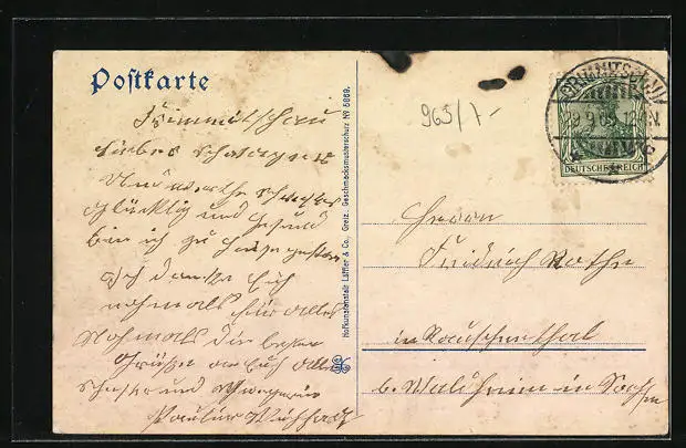 alte Ansichtskarte, gelaufen 1909, guter Zustand