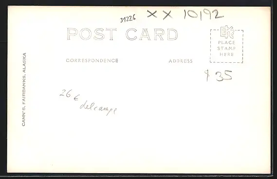 Personenbezogene Daten auf der Rückseite der Karte wurden durch blauen Textmarker unkenntlich gemacht. Die blauen Stellen sind auf die Vorderseite durchgeweicht und wirken sich negativ auf das Postkartenfoto aus