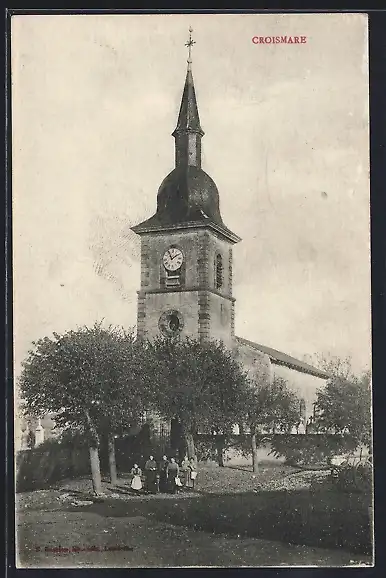 AK Croismare, L`église avec des habitants devant l`entrée