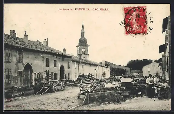AK Croismare, Vue de la rue principale avec charrettes et habitants
