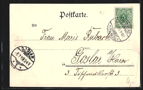 alte Ansichtskarte, gelaufen 1899, Eckknick li. unten, guter Zustand