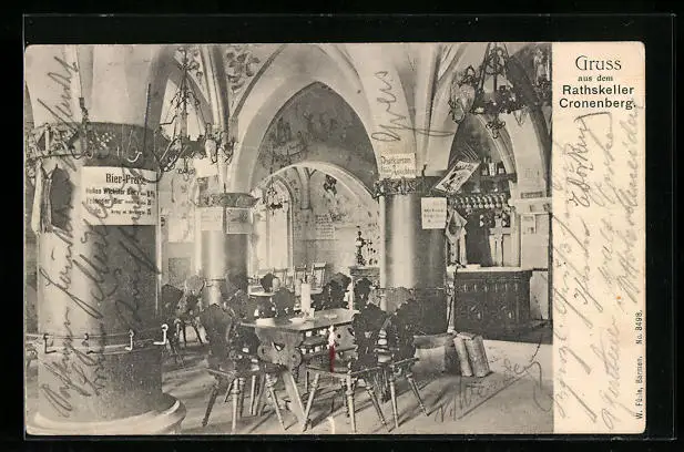 AK Cronenberg, Gasthaus Ratskeller, Innenansicht