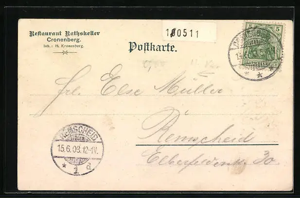 alte Ansichtskarte, gelaufen 1903, rückseitig Klebe- und Papierreste, guter Zustand