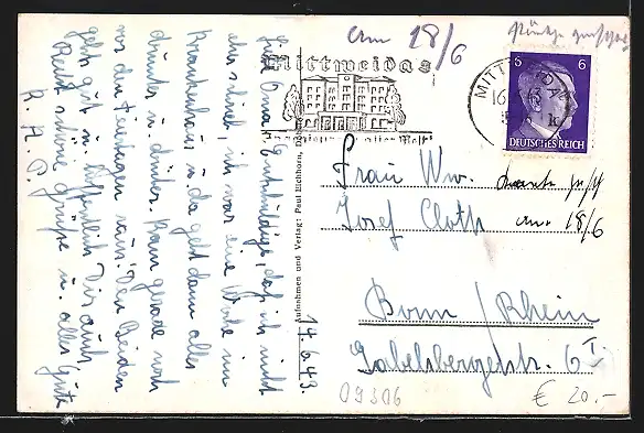 alte Ansichtskarte, gelaufen 1943, guter Zustand