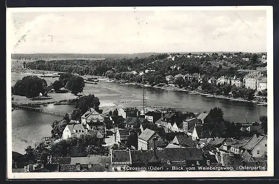 AK Crossen /Oder, Blick vom Weinbergsweg mit Oderpartie