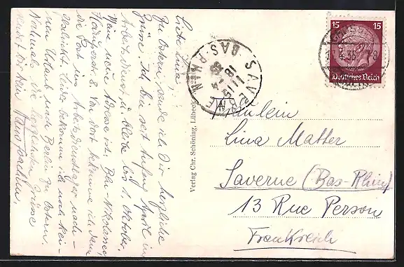 alte Ansichtskarte, gelaufen 1935, Stempelspur, guter Zustand