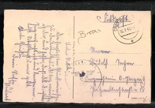 alte Ansichtskarte, gelaufen 1940 als Feldpost, guter Zustand
