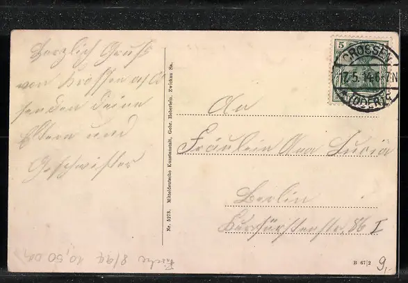 alte Ansichtskarte, gelaufen 1914, Stempelspur, Eckknick unten re., guter Zustand