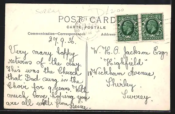 alte Ansichtskarte, gelaufen 1936, guter Zustand