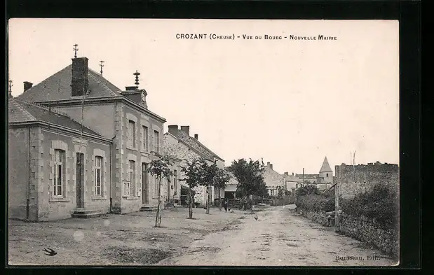 AK Crozant, Vue du Bourg, Nouvelle Mairie